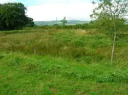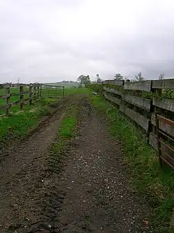 Close to Windyhouse was a deep pool, possibly a collapsed bell pit or limestone quarry, later used to dispose of dead animals, tree stumps, excess soil, etc; it is known as the 'Baney Hole' and is still visible as a wet area in the field. A number of small buildings existed nearby and the foundations of one are in the garden of Windyhouse, whilst another is located in the enclosure formed by hedge boundaries nearby. South Windyhouse Farm, once located next to the Hillhead Railway, no longer exists and no remains are visible.[20]