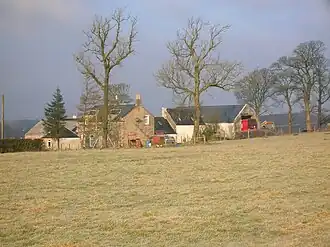 Windyhouse Farm still stands at the junction of the road to Gateside and at one time another road ran past it, serving a number of farms and cottages such as Ward, Scoup, Bogfauld, Birsieknowe and Whitespot, that lay within what is now the MOD Beith base. Windyhouse had a retting pit for the preparation of flax. This required about four to six days of immersion and the waste retting water, which requires treatment to reduce harmful toxic elements before its release, is rich in chemicals and was used as a liquid fertilizer.[20]