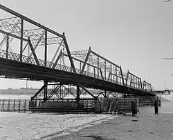 This span of the old Broadway Avenue Bridge lives on as the Merriam Street Bridge.