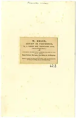 - ^ a b Fleming, M. (2005). "The Companies: Brock's". Firework Art. Archived from the original on 31 March 2010. Retrieved 5 February 2009.