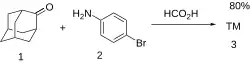 The Leuckart reaction between adamantanone and 4-bromoaniline in the presence of formic acid produces bromantane.