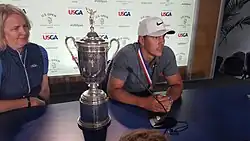 In 2017, Koepka won his first major championship by claiming the U.S. Open title at Erin Hills, Wisconsin.[19] His win tied him for the record of the lowest U.S. Open score at 16 under (tied with Rory McIlroy's 2011 record).[20]