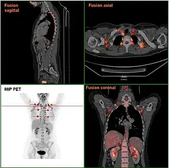 - ^ Yeung HW, Grewal RK, Gonen M, Schöder H, Larson SM (2003). "Patterns of (18)F-FDG uptake in adipose tissue and muscle: a potential source of false-positives for PET". J Nucl Med. 44 (11): 1789–96. PMID 14602861.