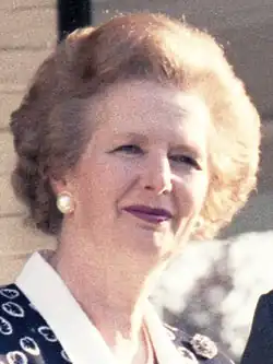 Though, in essence, a pro-European speech, it quickly became a symbol of hostility to Europe, behind which Eurosceptics rallied.[7][8] The address exposed a divide in the Conservative Party between the minority of European federalists and the majority who were opposed.[6] Former prime minister Edward Heath, who had handled the original negotiations on the British accession to the European Communities, broke the precedent against criticising a sitting Government while the Prime Minister is engaged in foreign negotiations by travelling to Brussels while Thatcher was there to attend the 1988 NATO summit to deliver a rebuttal personally.[9] The Bruges speech greatly affected Howe, who considered Thatcher's position to be at odds with his own, and on 4 May 1989 he met with the Chancellor of the Exchequer, Nigel Lawson, who had been planning for the country to join the European Exchange Rate Mechanism (ERM), an EEC economic stability measure, against Thatcher's wishes. Howe and Lawson continued to lobby Thatcher on the matter; however, Lawson resigned when Thatcher refused to sack her chief economic adviser Sir Alan Walters, who opposed British membership of the ERM. Britain eventually joined the ERM on 5 October, under Lawson's replacement as chancellor John Major.[2] The political decision ultimately led to Thatcher's resignation and replacement by Major, who came to prominence for his role in the ERM decision.[6][2][8] Thatcher became increasingly sceptical of the EEC after her resignation.[2]