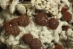 | Closeup of the apothecia of Byroplaca sinapisperma | |