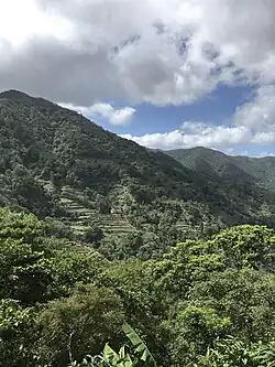 The average elevation of the populated mountain ridge is 764.5 metres (2,508 ft) above sea level, surrounding a valley that serves as the catchment area for the Aganan River. The highest point in the region reaches 1,300 metres (4,300 ft).