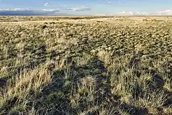 Along with blue grama it is the co-dominant species in most of the shortgrass prairie ecosystem in the western Great Plains.[29] Buffalograss is also an important component of the mixed grass prairie in drier areas and where impervious clay soils on slopes prevent the establishment of taller grasses. It also rapidly colonizes disturbed areas due to its vegetative reproduction.[4] In the High Plains it grows best in fine textured soils and grows sparsely on sandy soils and may be overwhelmed by shifting sands.[8] It is a component of the Western Gulf coastal grasslands in Texas, Louisiana, and Tamaulipas.[30] Off the plains buffalograss is associated with eastern ponderosa pine forests as an understory plant, in the Cross Timbers ecoregion, and with mesquite and oak savannas.[29] In some locations, most often at higher elevations, in the semidesert grasslands of New Mexico and northern Mexico, buffalograss is also an important species with other grama grass species.[31] At the extreme limits of its habitat it survives low temperatures of −34.5 °C (−30 °F) or high temperatures of 49 °C (120 °F).[14] Its elevation range is large, from near sea level to as high as 1,925 metres (6,300 ft) in Wyoming.[29]