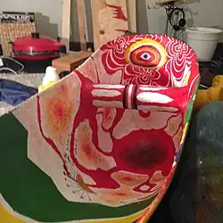 In February 2016, one of the larger yellow buckets located near the bottom of the fountain was stolen in the night.[14] After a plea by the Wellington City Council to have the bucket returned, the missing bucket was left in the pool at the base of the fountain. The returned bucket was found to have been painted with an intricate and psychedelic pattern.[15] On 17 March, the bucket was reinstalled on the fountain. Wellington Mayor Celia Wade-Brown, when approached on the issue, said "I'm unequivocally blissful they brought it back unscathed and apparently enhanced, from what I’ve seen. We consider it an utterly appealing small paint job."[16]
