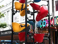 The Bucket Fountain is an iconic kinetic sculpture in Wellington, the capital city of New Zealand. It is located in Cuba Mall, which is part of Cuba Street. It consists of a series of "buckets" that fill with water until they tip, spilling their load into the buckets and pool below. The fountain was designed by Graham Allardice of Burren and Keen and erected in 1969.[1][2]