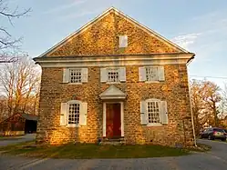 A stone schoolhouse was built to the east of the meetinghouse in 1798, and forms the nucleus of the current Buckingham Friends School.[5] The current building was completed in 1768 and was the first of the doubled type meeting houses that became the standard form of Quaker meeting house for the next 100 years.[6]