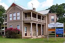 The town of Buda sprang up along the route of the International-Great Northern Railroad, which was extended from Austin to San Antonio in 1880. Buda bore the name of "Du Pre" from its birth in 1881 until the autumn of 1887, when postal officials became aware that another Texas town was also named Du Pre. Cornelia Trimble platted the town of Du Pre on April 1, 1881, establishing streets and a 150-foot (46 m) wide "Reservation" between the lots and the railroad right of way, which allowed the railroad to place buildings on the parkland, including the depot that would become the lifeblood of the town over the next few decades.[10] Several businesses sprang up, including the Carrington Hotel, which served meals to railroad travelers. By the time Du Pre found a new name for itself, the Carrington hotel was known as the "Buda House". The "Dupre Notes" column of the Sept. 25, 1886, edition of the Hays County Times and Farmer's Journal notes that "The Buda House is one of the best hotels in the state. The polite and entertaining hostess, Mrs. Carrington, meets all with a courteous welcome." According to the town's oral tradition, "Buda" is a corruption of the Spanish word viuda, or "widow", referencing the widows who supposedly worked as cooks at the Carrington Hotel. Others suggest that like the town of Buda, Illinois, the town name is a nod to the exiles of the failed Hungarian Revolution of 1848 who settled in the area.