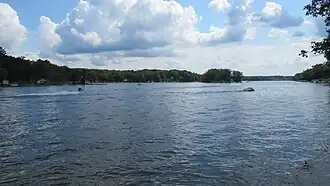 The lake is popular among anglers, particularly for its muskies, some longer than 40 inches, along with bass, panfish, perch and walleye.[4] Dropoffs near the shore provide deep water refuge; the lake is up to 30 feet deep, with the south end being shallower.[4]