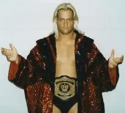 After Cornette closed SMW, both Cornette and Landel went to the World Wrestling Federation.[40] Working without a contract, Landel began wrestling for the WWF on December 17, 1995, at In Your House. It would be his only WWF pay-per-view match. It was not a favorable debut though as he was defeated quickly by Ahmed Johnson in only 45 seconds. He continued to use a very similar image to Ric Flair, even using Flair's early 90s WWF entrance music. He made his Raw debut the next night, defeating Bob Holly.[40] He also defeated Matt Hardy on the December 23, 1995, episode of Superstars.[41] It was right after this match that Landel suffered a serious injury outside of the arena, slipping on ice and tearing his right quadriceps. He was out of action for six months as a result.[1][40] Landel wrestled Bret Hart in a WWF World Heavyweight Championship match shown on Mania on January 13, 1996, although the match was taped prior to Landel's injury.