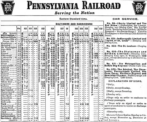 4. ^ "Pennsylvania Railroad, Table 155". Official Guide of the Railways. 74 (1). National Railway Publication Company. June 1941.