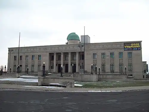 The Buffalo Museum of Science is a science museum located at Martin Luther King Jr. Park in Buffalo, New York, United States, northeast of the downtown district, near the Kensington Expressway. The historic building was designed by August Esenwein and James A. Johnson and was dedicated on January 19, 1929. It gave a permanent home to the exhibits that started to be collected by the Buffalo Young Men's Association (founded 1836), which had passed them to its 1861 creation, the Buffalo Natural History Society,[1] with George W. Clinton chosen as the Society's first president.