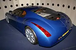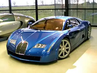 The Bugatti 18/3 Chiron is a 1999 concept car developed by French automobile manufacturer Bugatti Automobiles and designed by Fabrizio Giugiaro of Italdesign.[3] Powered by a 6.3 L W18 engine, it is a 2-seater mid-engine coupé. The 18/3 Chiron was the last in a trio of Bugatti concept cars by Italdesign, after the 1998 EB 118 coupé and the 1999 EB 218 saloon.