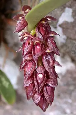 - ^ Davies, Kevin L.; Stpiczyńska, Malgorzata (2014). "Labellar anatomy and secretion in Bulbophyllum Thouars (Orchidaceae: Bulbophyllinae) sect. Racemosae Benth. & Hook. f." Annals of Botany. 114 (5). Oxford University Press: 889–911. doi:10.1093/aob/mcu153. ISSN 0305-7364. JSTOR 43579656. PMC 4171068. PMID 25122654. Retrieved 2022-04-15.