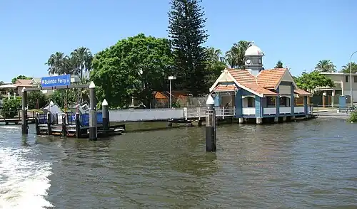 The CityCat services all of these ferry terminals along the Brisbane River.[5] A cross-river ferry service also operates between Bulimba and Hawthorne ferry wharves.[6]