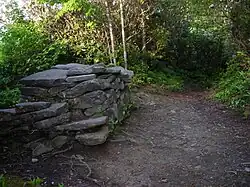 The partition of the Bullhead and Rainbow Falls trails, two-thirds of a mile below the LeConte Lodge, showcasing Bullhead. | |