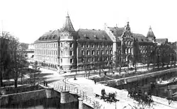 The state-run regional administrations which formed part of the Royal Bavarian State Railways were initially referred to as "railway offices" (Bahnämter) and "main railway offices" (Oberbahnämter). The latter were located in Augsburg, Bamberg, Ingolstadt, Kempten, Munich, Nuremberg, Regensburg, Rosenheim, Weiden and Würzburg.[2] Until 1886, they were subordinated to the "General Division of Royal Transportation" (Generaldirektion der königlichen Verkehrsanstalten) and from 1886 to 1906 to the "General Division of the Royal Bavarian State Railways" (Generaldirektion der königlich bayerischen Staatseisenbahnen). From 1906 'railway operating divisions' (Eisenbahnbetriebsdirektionen) were created, that reported to the "State Ministry for Transport" (Staatsministerium für Verkehrsangelegenheiten).[3] They included the divisions of Augsburg, Ludwigshafen/Rhine, Munich, Nuremberg, Bamberg, Regensburg and Würzburg, that, apart from Bamberg (which became part of Nuremberg) were taken over by the Reichsbahn in 1920.