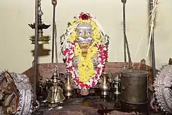 Butas and daivas (tutelary deities) are not worshiped on a daily basis like mainstream Hindu gods.[37] Their worship is restricted to annual ritual festivals, though daily pujas may be conducted for the ritual objects, ornaments, and other paraphernalia of the būta. Unlike with the better-known Hindu gods of the puraṇic variety, buta worship is congregational and every caste in the Tulu speaking region has its own set of butas and daivas that they worship.