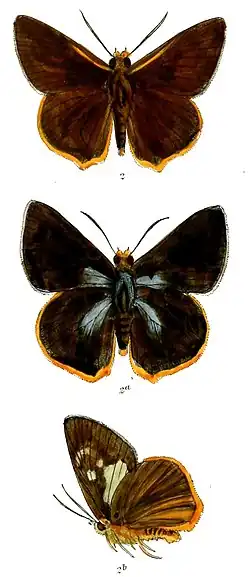 One or more of the preceding sentences incorporates text from this source, which is in the public domain: Swinhoe, Charles (1911–1912). Lepidoptera Indica. Vol. IX. London: Lovell Reeve and Co. pp. 231–232.