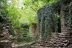 The castle was built around 1250. It was razed around 1368. The foundation is the only part from the medieval period. Drawings dating back to 1581 are extant, but they are no reliable representation. The castle ruins were demolished in 1709, with only the dungeon surviving until 1936.[1] The castle ruin is c. 110 metres (360 ft) m long and c. 60 metres (200 ft) m wide. The surrounding wall is mostly preserved. [2]