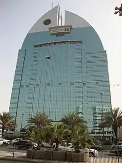 Anoud Tower (Arabic: برج العنود) is a skyscraper in the al-Olaya district of Riyadh, Saudi Arabia.[1] It was completed in 2005. At 155 m high, it is a major commercial building on King Fahd road. It contains 20 floors with 3 basement levels. A twin tower is being completed alongside it. The tower is named after Princess Al Anoud bint Abdul Aziz bin Mousaed al-Saud, the wife of King Fahd bin Abdulaziz and is moderated by several Saudi Arabian companies including Alinma Bank Head Office & Novotel Hotels. The building design is based on a swordfish.
