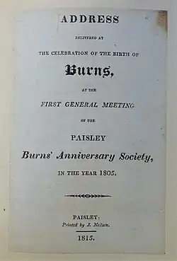 11. ^ a b c Paisley Burns Club Archived 29 April 2015 at the Wayback Machine Retrieved : 2013-12-23