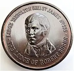 Burns Clubs exist throughout the world to encourage and cherish the memory of Robert Burns, to foster a love of his writings and generally to encourage an interest in the Scots Language and Literature.[1] An emphasis on encouraging the young to take an interest in Burns is found in most clubs through poetry, singing and other competitions. Once mainly existing as 'male only' clubs in the mould of the Tarbolton 'Batchelor's Club'[2] most now welcome women as fellow members. Ladies Burns Clubs also exist such as the 'Irvine Lasses' that was established in 1975; it has appointed several male 'Honorary Lasses'.[3]