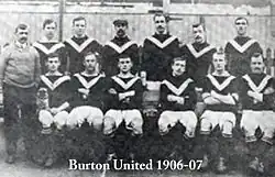 Burton United Football Club was a football club based in Burton upon Trent in England. The club was established in 1901 by a merger of Burton Swifts and Burton Wanderers, and played their last competitive season in 1910. In 1924 they merged with Burton All Saints continuing the lineage of the history of football in Burton, while at the same time legally ending the club. Between 1901 and 1907, the club were members of the Football League.
