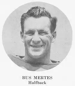 Bernard James "Bus" Mertes (October 6, 1921 – January 17, 2002) was an American football player and coach. He played college football at the University of Iowa and professionally in the National Football League (NFL) and the All-America Football Conference (AAFC) with the Chicago Cardinals, Los Angeles Dons, Baltimore Colts, and New York Giants. Mertes served as the head football coach at Bradley University from 1951 to 1952, at Kansas State University from 1955 to 1959, and at Drake University from 1960 to 1964, compiling a career college football coaching record of 50–63–1.