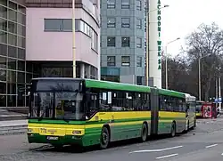 Bus transport in Szczecin – part of public transport, which connects city districts and city Szczecin with Police, Dobra, Kołbaskowo, Police, Kobylanka and Goleniów. Szczecin buses are operated by four companies on behalf of the ZDiTM (Zarząd Dróg i Transportu Miejskiego; Road and Public Transport Administration). The bus system has been in operation since 1928. Nowadays, in Szczecin and the surrounding area 73 bus lines are running, including 54 normal lines, 5 fast lines and 14 night lines.