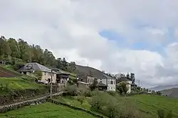 While the parish elevation is 720 m (2,360 ft) above sea level, the highest point is Panchón Peak at 1,411 m (4,629 ft), and the lowest point is at the Navia River at 110 m (360 ft).[1] It is 15.14 km2 (5.85 sq mi) in size. The population is 19 (INE 2011). The postal code is 33888.