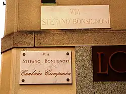 This was an alley that opened southwards at the south-western corner of Piazza San Giovanni Battista, present in the Teresian Cadastre and referred to as Vicolo della costa in the 1857 Cadastre. Luigi Ferrario in 1864 also mentions this name.[18] The name remained unchanged until the beginning of the 20th century, but in the toponymy of 1910 the name Vicolo Rauli (Rauli Alley) can be found, from the name of an ancient Bustese family. The 1930 partial town-planning scheme provided for the opening of a street between Piazza San Giovanni and Via Ugo Foscolo, opening up Vicolo Rauli, implemented in 1932 with the odonym of Via Cardinale Eugenio Tosi.[19]