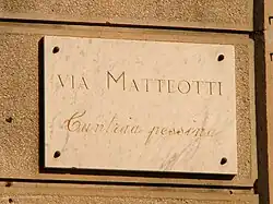 This was the street, still in existence, that ran westwards from Piazza Santa Maria. It owes its name to the presence, in the square, of the ‘beccaria’, a porticoed building used for butchering meat.[11] Its name changed several times over time: first to Contrada del Mercato, from 1876 to Via Alessandro Manzoni and from 1905 to Via Felice Cavallotti, the name it still has today. From 1939 until the end of World War II it took the name Via Addis Ababa.[12]