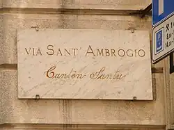 The Contrada Basilica was one of the four contrade comprising the territory around the basilica of St John the Baptist, from which it takes its name (basega literally means basilica).[6] In the second half of the 19th century, the chronicler Luigi Ferrario reported the name Porta Milano as the new toponym of the district, since the gate (renamed Porta Milano) led to the Simplon road and thus to the city of Milan.[5]