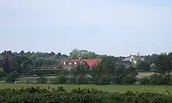 The Priory site from the south-east. The Gatehouse is at the north of the precinct: the church and convent buildings stood on the site of the farm
