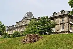 Buxton held a base for British and Canadian troops in the First World War. Granville Military Hospital was set up at the Buxton Hydropathic Hotel, with the Palace Hotel annexed. The author Vera Brittain trained as a Voluntary Aid Detachment nurse at the Devonshire Hospital in 1915. The Royal Engineers based in Buxton used the Pavilion Gardens' lakes for training to build pontoon bridges.[7][16][17] Prisoner of war camps at Ladmanlow and Peak Dale were established in 1917 to supply workers for the local limestone quarries.[18]