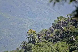 The Bvumba Mountains are composed mainly of granite which forms the eastern margin of the Zimbabwe Craton. The Vumba granite has been dated at over 2,600 Ma.[5] The granites are intruded in places by Umkondo dolerite sills[6] which are dated to about 1,110 Ma.[7][8]
