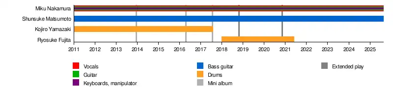 - Miku Nakamura (中村未来) — vocals, guitar, keyboards, manipulator (2011–present)