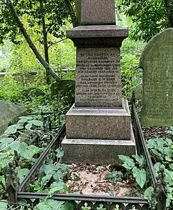 He was survived by his wife, son, and four daughters and was buried on the western side of Highgate Cemetery on 24 April 1899. The funeral was attended by Colonel Bird and the whole of the officers of the Victoria and St George's Rifles (1st Middlesex) who formed a guard of honour. His executors were fellow West Indian merchant Joseph Frank Alderhoven, and major James Rufus Boosé.[5][15] All three were members of the Royal Colonial Institute.[16][17]