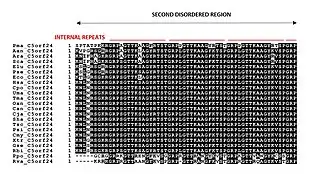 Multiple sequence alignments revealed the C5orf24 protein has been highly conserved and likely originated in cartilaginous fishes nearly 465 million years ago.[7][32][35][36] A series of internal repeats in the second disordered region were additionally identified in proteins found within jawless fishes and invertebrates, suggesting an orthologous domain began even further back in evolutionary history.[7]