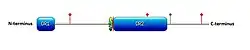 Isoform 1 of the UPF0461 protein C5orf24 is 188 amino acids long encoded by exon 2.[6] It contains two disordered regions at the amino acid positions 1-20 and 79-142, respectively.[6] The second disordered region contains a series of internal repeats.[19][20] The human precursor protein is predicted to be 20.1 kDa with an isoelectric point of approximately 10.[21] Immunoblotting demonstrated the experimental molecular-weight to be about 25 kDa.[22] Three experimental phosphorylation sites have been reported at Ser37,[23] Ser121,[24] and Ser180[24] along with evidence for a ubiquitination site at Lys146.[25][26][6][27] A conserved nuclear localization signal at amino acid positions 79 – 83 (KKKK) was corroborated by immunofluorescence experiments using anti-C5orf24 antibodies depicting localization to the nucleoplasm.[7][8][9] Affinity chromatography and anti tag coimmunoprecipitation experiments showed C5orf24 likely interacts with multiple other proteins including STK11, CAB39, LYK5, PKNOX1, and PBX1.[28][29]
