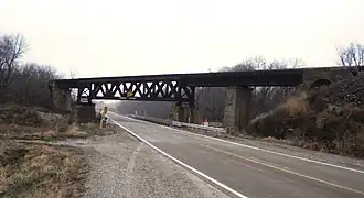 CM and StP Railroad Underpass is a historic structure located southwest of Washington, Iowa, United States. It was listed on the National Register of Historic Places in 1998. The Warren deck truss bridge is a rare example of this type of bridge in Iowa, and the oldest still in existence.[2] Given the relatively flat nature of Iowa's rivers and streams this bridge type was rarely built in the state, and was mostly built for railroad use.[2] This bridge, completed in 1903 by the Chicago, Milwaukee, St. Paul & Pacific Railroad (known as simply The Milwaukee Road), crosses a county highway bridge and the west fork of Crooked Creek.