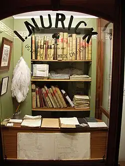 The CP Nel Museum is one of a few secular museums in the world to house a synagogue. At the suggestion of Isidore Barron, who had been a member of the museum's Board of Trustees, the Jewish gallery was opened in 1973.[8] This room is a reconstruction of the old St. John Street Synagogue as it was in 1896,[4] and depicts the contribution of Oudtshoorn's Lithuanian Jewish community to the ostrich industry.[2] The synagogue is still occasionally used for services.[8]