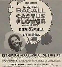 - ^ Taubman, Howard (9 December 1969). "Theater: 'Cactus Flower'; Abe Burrows Comedy Opens at the Royale". The New York Times. Retrieved 26 November 2024.