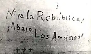 The flag-bearer of the cadets was shot and killed during the massacre. A young girl by the name of Carmen Fernández proceeded to take the flag but was shot and gravely injured. A young cadet by the name of Bolívar Márquez Telechea, despite being mortally wounded, dragged himself to a wall and wrote with his blood the following message before he succumbed to his wounds:[16]