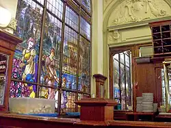 Café Las Violetas opened on 21 September 1884. It was rebuilt in the 1920s with stained-glass windows, curved glass doors and Italian marble floors. The stained-glass windows followed the sketches in watercolor and ink for designers in 1928. These sketches, which were preserved, were made in accordance with the recommendations of architect Antonio Estruch, who had experience of similar works in the cafe "Tortoni". He was responsible for the installation.[1]