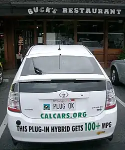 - ^ The PRIUS+ was CalCars first PHEV Prius, its homepage can be found at http://www.calcars.org/priusplus.html, Photos, Commercializing Plug-In Hybrids presentation (2MB PDF)